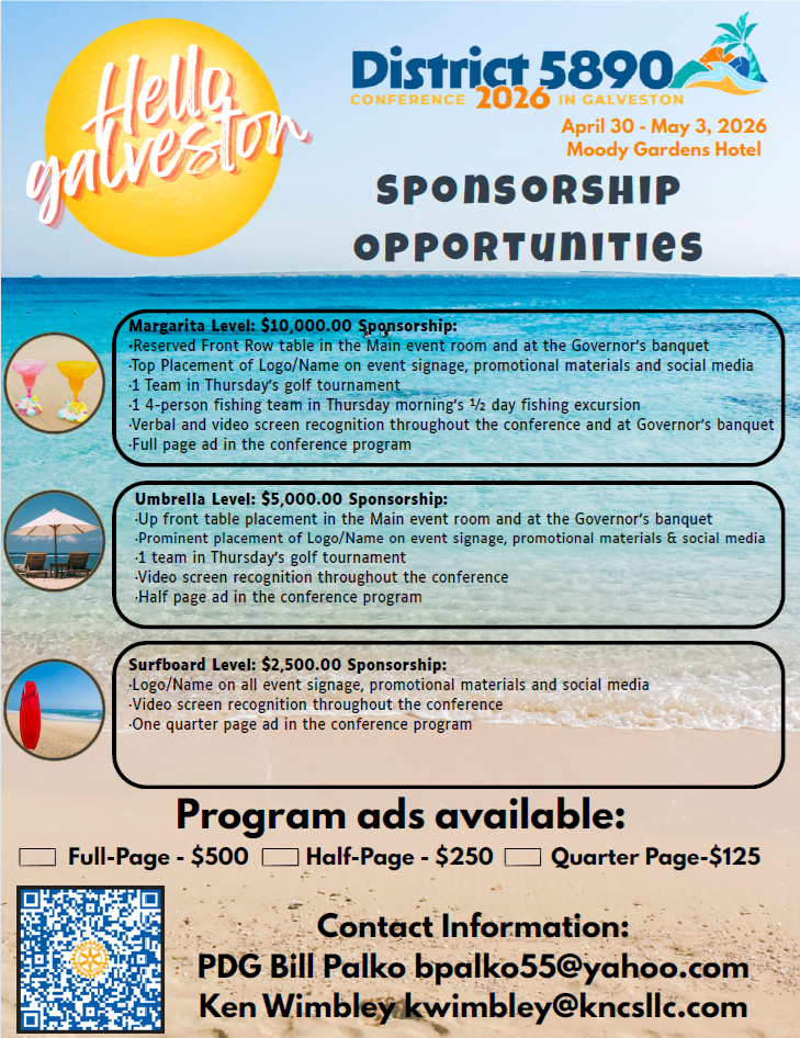 2026 Rotary District 5890 Conference, fishing excursion & Golf tournament in galveston
