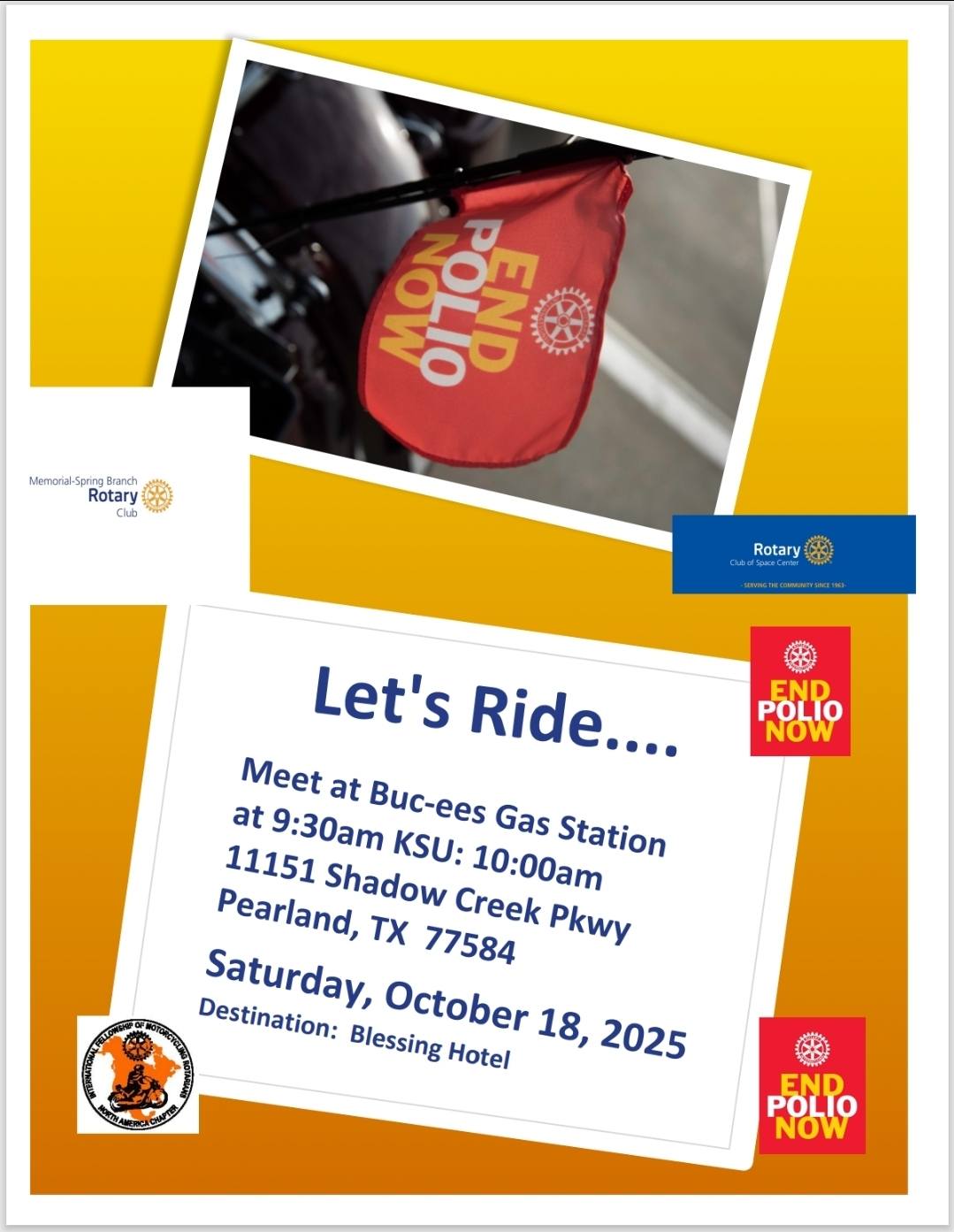 Saturday, October 18th Is Our 2025 Motorcycle "Ride To End Polio Now"