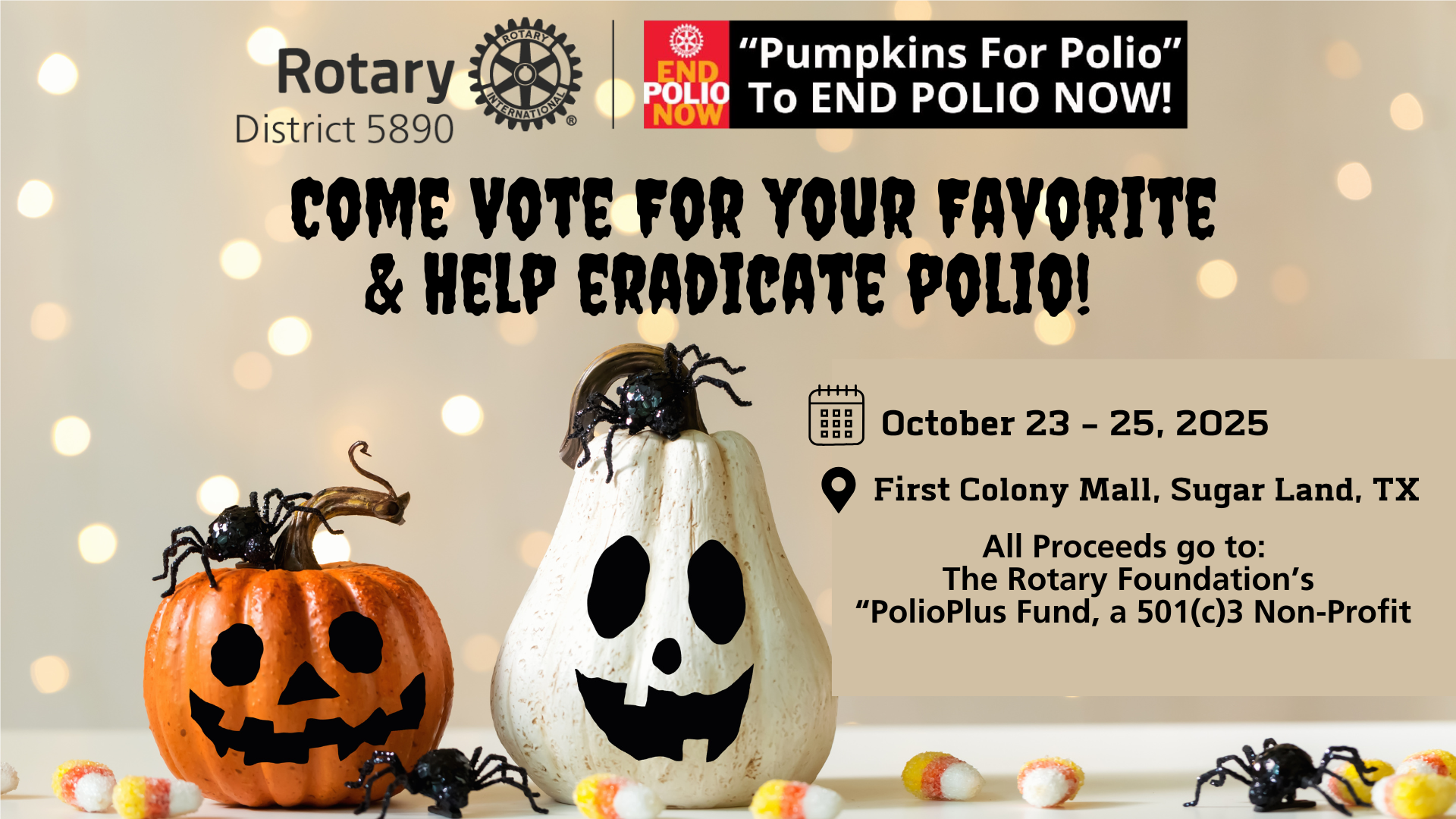 - "2nd Annual Pumpkins for Polio" at First Colony Mall on October 23rd - 25th (Thursday, Friday & Saturday) - See Story below!