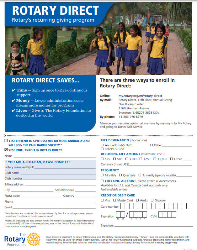 See below for "5 Reasons Why We Must Eradicate Polio", our PolioPlus Society Membership Form, and the super easy ways to make your donation!