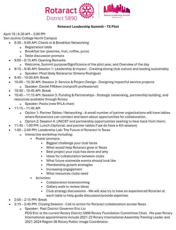 - A Leadership Lab workshop focused on the future of Rotaract in Texas